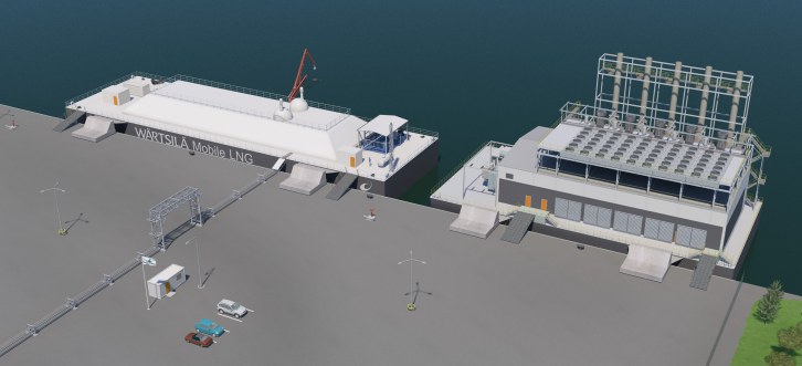 The Wärtsilä Mobile LNG can easily be combined with a barge-mounted power plant having an output capacity of up to 250 MW.