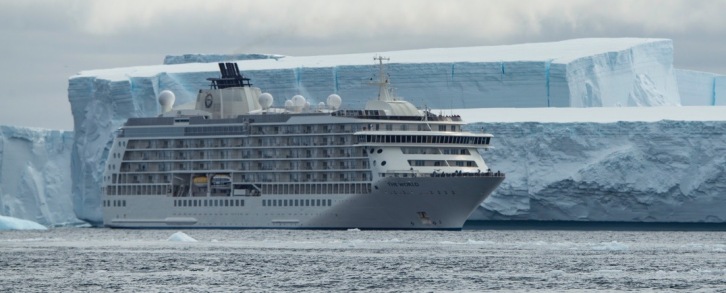 “The World” is to be retrofitted with Wärtsilä solutions. Here the ship is in Hong Kong and Antarctica. Image by Wärtsilä.