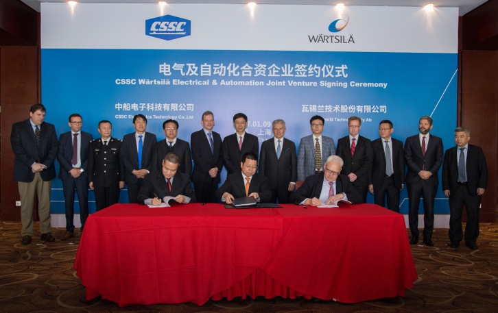 The new joint venture company agreement is signed by Mr Yang Guobing, Chairman of CSSC Electronics Technology Co., Ltd, Mr Ma Yunxiang, Vice chief Economist, Director of Planning and Development Department, CSSC and Mr Stephan Kuhn, Vice President, Electrical & Automation, Wärtsilä Marine Solutions. Wärtsilä in brief: Wärtsilä is a global leader in advanced technologies and complete lifecycle solutions for the marine and energy markets. By emphasising sustainable innovation and total efficiency, Wärtsilä maximises the environmental and economic performance of the vessels and power plants of its customers. In 2016, Wärtsilä's net sales totalled EUR 4.8 billion with approximately 18,000 employees. The company has operations in over 200 locations in more than 70 countries around the world. Wärtsilä is listed on Nasdaq Helsinki. Wärtsilä Corporation press release |