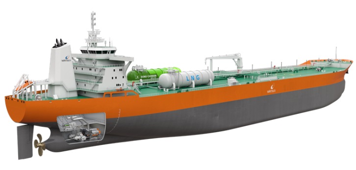 9 June 2021 The new propulsion arrangement designed by Wärtsilä and RINA offers a future-proof and efficient alternative to conventional designs. © Wärtsilä Corporation • Single engine needed for both propulsion and electric power • Ship design EEDI value can be lowered by up to 50 percent • Immediate compliance with IMO 2030 targets The technology group Wärtsilä and the classification society RINA have announced a novel propulsion arrangement that offers full redundancy, less machinery, lower capital expenditure, reduced operational complexity, and optimised fuel consumption to lower costs and achieve emissions compliance. The new concept changes traditional ship design thinking and offers a highly efficient, future-proof alternative. The conventional approach in ship design has been to use 2-stroke engines for propulsion and 4-stroke engines for electric power generation. The Wärtsilä / RINA arrangement, however, requires just two 4-stroke dual-fuel (DF) engines, with options for electric power back-up from batteries or a small DF generator when the ship is idle. The design can achieve a reduction of up to 50 percent from the Energy Efficiency Design Index (EEDI) reference level value, and immediate compliance with the IMO’s 2030 targets. The arrangement features Wärtsilä 31DF engines operating with LNG fuel. Guinness World Records has recognised the diesel version of the Wärtsilä 31 engine type as being the world’s most efficient 4-stroke diesel engine. The engine has exceptional reliability and performance, along with the flexibility to utilise future zero-carbon fuels, thereby facilitating the pathway to decarbonisation. “At Wärtsilä we are committed to leading shipping into a new era of higher efficiencies, lower operating costs, and greater environmental sustainability. This cooperation project with RINA is fully in line with these ambitions, and we see this propulsion arrangement as being an important and value-adding option for the coming generation of newbuilds,” says Lars Anderson, Director, Product Management & Sales Support, Wärtsilä Marine Power. “We are really excited about this new concept as it represents a proven and more efficient solution than was earlier possible. The combination of fewer running components and 100 percent redundancy, with a single engine capable of handling both propulsion and electric power, even in port, promotes both safety and reliability. The highly efficient Wärtsilä 31DF engine enables ship owners to reduce fuel costs, while at the same time being proactively prepared for the fuels of the future,” says Antonios Trakakis, Greece Marine technical Director at RINA.