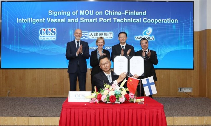 From the MoU virtual signing ceremony on 25 November 2021 in the presence of the dignitaries from the Ambassador of Finland to China and the Ministry of Transportation, People’s Republic of China. Image by the China Classification Society (CCS) China and Finland jointly endorse the project under the China-Finland Science and Technology Innovation Cooperation MoU, and the China-Finland Flagship Project on Science and Technology Innovation Cooperation Strategy, 2019-2023. The MoU was virtually signed on 25 November 2021 in the presence of the dignitaries from the Ambassador of Finland to China and the Ministry of Transportation, People’s Republic of China. The bigger Asia Pacific picture Asia has nine out of ten busiest ports in the world, and seven of those are in China. The Tianjin Port as a success case will thus offer an enormous opportunity to engage all other maritime ecosystem leaders. Increasing traffic, congestion, the unpredictability of weather conditions and emissions have become major challenges for ports worldwide. During the pandemic, vessels in Asia had a waiting time of 5 to 7 days. All this has acted as catalysts for ports to adopt innovative technologies that help mitigate delays and disruptions. The Tianjin Port has stayed at the forefront of such technological innovations — be it becoming the world's first port to get approval for an autonomous driving demonstration zone with 25 unmanned electric trucks, to more recently unveiling the smart zero-carbon terminal that shows its commitment towards preserving the planet. “This project complements our larger vision of safer and more sustainable port operations, as well as gives us the opportunity to explore further collaborations to enhance our smart port services in the future,” said Yang Jiemin, Vice President, Tianjin Port Group. Having worked with leading ports on Just-in-Time solutions, and with a massive installation base of connected vessels, Wärtsilä Voyage is uniquely placed to offer end-to-end smart port technology that goes beyond ship-to-shore connectivity to include the entire logistic chain and voyage optimisation ecosystem via secure, cloud-based integrated solutions. Aid China’s intelligent shipping strategy The newbuilt vessel will be equipped with an advanced situational awareness system to detect small objects in low visibility conditions and provide decision-making support to the crew. However, the technology will not be limited to port operations alone. It can be applied and extended to domestic vessels in the future. That, combined with new safety and quality standards, will drive the adoption and scale-up deployment of smart technology in the non-seagoing segment as well — a key factor to enhance China’s shipping competitiveness. “CCS has already published the Intelligent Ship Rules and Guidelines to drive smart technology adoption in the ocean-going vessels. But with more than 120,000 domestic vessels in service in China, there is a need for creating similar technological set-ups and standards for the inland segment as well. Wärtsilä Voyage was one of the only global vendors to offer a full suite of on vessel and onshore solutions such as propulsion, smart sensors, automation, navigation, and simulators. More importantly, with successful projects in the past, like IntelliTug and Folgefonn, they offered proven solutions and a clear roadmap for future expansion,” said Sun Feng, Vice President, CCS. “We are very excited to work with Tianjin Port Group and CCS in an ecosystem partnership to develop and deploy technology and innovation according to CCS intelligent ship standards that are adapted for domestic vessels. The human centric approach to technology adoption, quality assurance and type approval by CCS will demonstrate tangible value and ready for scaled adoption. We look forward to strong teamwork, in line with the spirit of Finland – China collaboration set out by the two nations,” added Chris Chung, Director of Digital Innovation and Strategic Projects at Wärtsilä Voyage. Wärtsilä Voyage in brief Wärtsilä Voyage transforms how vessels perform their journeys and ports manage their operations by leveraging the latest digital technologies. Using data and AI-driven software, we deliver real-time insights into operations, performance, and energy use to enhance safety, efficiency, reliability, while minimising emissions. Our solutions combine bridge infrastructure, cloud data services, decision support systems and smart port solutions to enable shore-to-shore visibility. We are committed to building an end-to-end connected digital ecosystem for shipping where all vessels, ports, and logistics infrastructure beyond are technologically smart, and all operations are safe and sustainable. Wärtsilä in brief Wärtsilä is a global leader in innovative technologies and lifecycle solutions for the marine and energy markets. We emphasise innovation in sustainable technology and services to help our customers continuously improve their environmental and economic performance. Our dedicated and passionate team of 17,500 professionals in 200 locations in more than 70 countries shape the decarbonisation transformation of our industries across the globe. In 2020 Wärtsilä’s net sales totalled EUR 4.6 billion. Wärtsilä is listed on Nasdaq Helsinki. Wärtsilä Corporation press release