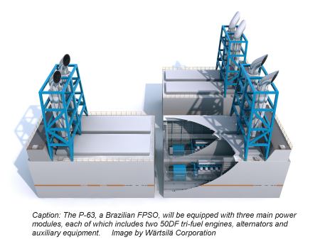 In a breakthrough deal, Wärtsilä has signed a contract with the Brazilian industrial group QUIP to supply three main power modules for a new P-63 Floating Production Storage and Offloading (FPSO) vessel. The vessel is unique in that it will be the first FPSO to utilize gas engines to produce more than 100 MWe of power. The contract includes commissioning, start-up and operational supervision. The power modules will be ready for installation in July 2011 and oil production is scheduled to begin in 2013. The vessel will operate on Brazil’s new Papa Terra oilfield, located some 110 kilometres off the coast of Rio de Janeiro in the southern Campos Basin.