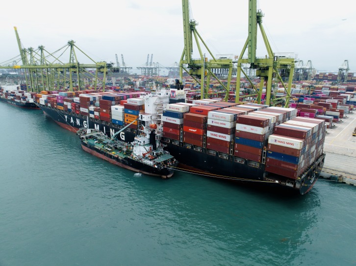 Yang Ming YM Masculinity was bunkered with biofuel at Singapore on 8th March. Image by Yang Ming. Yang Ming - press release