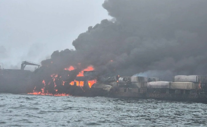 The Royal National Lifeboat Institution has confirmed fires broke out on both vessels, with sailors abandoning the two ships.