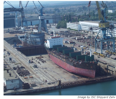 At the present moment the repair works on intermediate bulkhead have been already started: the works on desilting of bulkhead walls, replacement of steel and its painting, the works on repair of pumping equipment of the dock proceed to conclusion. After completion of these works the yard employees will come to the repair of the main bulkhead that will be dismantled with the assistance of the divers to the specially manufactured pontoons and transported to the workshops of the yard wherein the repair works will take place. Moreover, the works on repair of hot dip galvanizing zone, grinding and painting of pipes have been started on the yard. This set of works has been recommended by the German consulting company IMG, serving as one of the actions aimed for increasing of production efficiency. It worth mentioning that performance of these works was planned for more than year ago, however, due the large scope of shipbuilding works it was impossible to implement them. Current temporary down time in the yard gives the possibility to the supporting departments to perform required repair-renovation works before the working load of Zaliv will come back to its maximum. JSC Shipyard Zaliv press release |