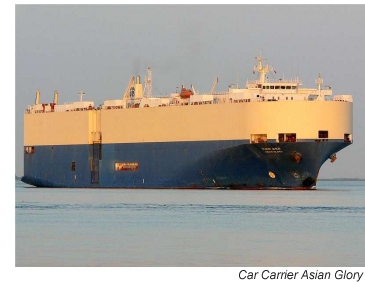 The 1994-built, 13,363 dwt, UK-flagged car carrier Asian Glory seized by pirates on Friday 01 Jan 2010, about 600 miles off Somalia in the Gulf of Aden.