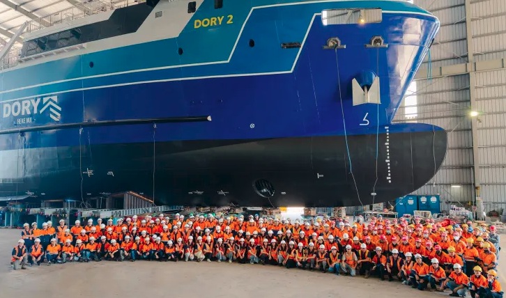 March 30, 2026 Austal Vietnam has successfully launched Hull 426, "Dory 2", a 71-metre roll-on/roll-off (RORO) passenger cargo vessel for The Degage Group of French Polynesia, marking another important milestone in Austal's expanding global steel shipbuilding capability. Featuring a steel monohull and aluminium superstructure, Dory 2 has been purpose-designed for inter-island operations and will accommodate up to 140 passengers and 17 crew. The vessel includes a 494 square metre cargo deck, capable of transporting containers, palletised freight and vehicles, providing a highly flexible logistics solution for the region. With a cruising speed of 12 knots and a range of 1,000 nautical miles, Dory 2 is optimised for reliable, efficient service between Papeete and the Palliser Islands, supporting essential transport and supply chain connectivity across French Polynesia. Mark Pleiter, Vice President - Austal Vietnam: "This is a proud moment for our team in Vietnam and a testament to the hard work, skill and dedication shown throughout the build so far. Successfully launching Dory 2 reflects the growing capability of our shipyard and the strength of our partnership with The Degage Group."