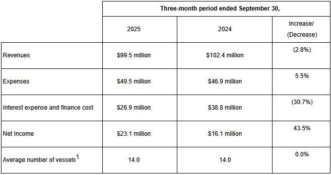 "The third quarter has marked another period of robust performance for the Company, with significant achievements across all strategic fronts and operational priorities. The business continues to build momentum, further strengthening its position within the LNG and gas transportation sector. The Company has successfully secured long-term employment for another LNG carrier currently under construction, well ahead of its scheduled delivery. This move not only demonstrates proactive planning but also contributes to further diversification of our customer base. The Company's total contract backlog duration now stands at 6.9 years, with $3.0 billion in contracted revenues. These figures highlight increased cash flow visibility and a de-risked balance sheet, which we believe will support the Company's financial stability. Financing has been secured for all six DF MGCs and all four LCO2/multi-gas carriers, which underscores the Company's financial agility and commitment to its strategic objectives. In parallel, the sale of another container vessel has enabled further recycling of the capital base with the proceeds being reinvested into the Company's under-construction fleet of gas shipping assets. Corporate governance continues to evolve, with changes in our Board of Directors. The Company expresses gratitude to Abel Rasterhoff for his service since our U.S. listing in 2007 and wishes him well in retirement. Martin Houston is welcomed to our Board, bringing unparalleled experience and stature in the LNG market. It has been just two years since the Company began its journey focused on gas transportation, following a rights issue in November 2023. Out of an eventual fleet of 18 LNG/Cs, CCEC now only has three latest generation LNG/Cs under construction that remain available for charter. Discussions regarding their future employment are underway with multiple counterparties, while the Company remains insulated from prevailing spot LNG market conditions for the next 12 months. By consistently executing on its strategy, CCEC is well on its way to becoming the largest US-listed company dedicated to LNG and gas transportation." Fleet Employment Update CCEC has secured employment for the LNG/C Athlos, 174,000 Cubic Meters ("CBM") currently under construction at Hyundai Samho, which is scheduled for delivery from the shipyard in the first quarter of 2027. In particular, the LNG/C Athlos has been chartered for a firm period of seven years by a major energy company, with three one-year options. Commencement of the charter is scheduled for the first quarter of 2028. Importantly, CCEC maintains the right to substitute the LNG/C Athlos with the LNG/C Archon (174,000 CBM currently under construction at Hyundai Samho and also scheduled for delivery from the shipyard in the first quarter of 2027), further increasing our commercial flexibility. As a result, CCEC now has an average remaining firm charter duration of 6.9 years and $3.0 billion in contracted revenues. Should all extension options be exercised by charterers, the average duration would increase to 9.8 years, with total contracted revenues rising to $4.4 billion. Overview of Third Quarter 2025 Results Net income for the quarter ended September 30, 2025, was $23.1 million, compared with net income of $16.1 million for the third quarter of 2024. Total revenue for the quarter ended September 30, 2025, was $99.5 million, compared to $102.4 million during the third quarter of 2024. The decrease in revenue was attributable to the off-hire periods related to the five-year special surveys underwent by LNG/Cs Aristos I and Aristidis I during the quarter, partly offset by the commencement of the long-term bareboat charter of Axios II in the first quarter of 2025. Total expenses for the quarter ended September 30, 2025, were $49.5 million, compared to $46.9 million in the third quarter of 2024. Total vessel operating expenses during the third quarter of 2025 amounted to $20.5 million, compared to $16.3 million during the third quarter of 2024. The increase in vessel operating expenses was mainly due to expenses related to the special surveys of LNG/Cs Aristos I and Aristidis I, which were completed during the third quarter of 2025. Total expenses for the third quarter of 2025 also include vessel depreciation and amortization of $23.1 million, in line with the third quarter of 2024. General and administrative expenses for the third quarter of 2025 amounted to $3.6 million, compared with $4.7 million in the third quarter of 2024, on the back of lower transaction-related costs, partly offset by higher costs incurred in connection with our equity compensation incentive plan. Total other expenses, net for the quarter ended September 30, 2025, were $26.9 million compared to $39.5 million incurred in the third quarter of 2024. Total other expenses, net include interest expense and finance cost of $26.9 million for the third quarter of 2025, compared to $38.8 million for the third quarter of 2024. The decrease in interest expense and finance cost was mainly attributable to the decrease in our average indebtedness and the weighted average interest rate charged on our debt compared to the third quarter of last year. Company Capitalization As of September 30, 2025, total cash amounted to $332.3 million. Total cash includes restricted cash of $21.5 million, which represents the minimum liquidity requirement under our financing arrangements. As of September 30, 2025, the Company's total shareholders' equity amounted to $1,462.9 million, an increase of $119.9 million compared to $1,343.0 million as of December 31, 2024. The increase for the nine months to September 30, 2025 reflects net income (including net income from discontinued operations) of $134.2 million, amortization associated with the equity incentive plan of $4.3 million, net proceeds of $0.2 million under the Company's ATM Program (as defined below) and $8.1 million of common shares issued under our Dividend Rein