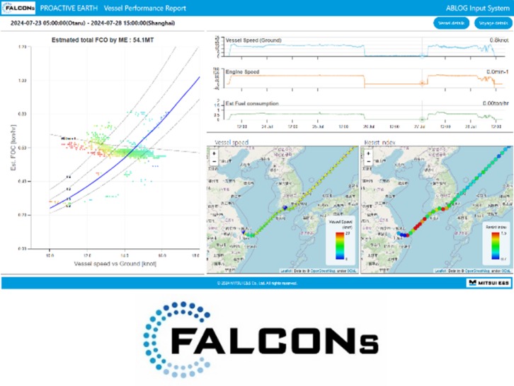 November 4, 2025 MITSUI E&S Co., Ltd. (Headquarters: Chuo-ku, Tokyo, President and CEO: Takeyuki Takahashi, hereinafter "MITSUI E&S") has commenced the provision of the hull contamination management service FALCONs for the container ship Proactive Earth operated by KAMBARA KISEN Co., Ltd. (Headquarters: Fukuyama City, Hiroshima Prefecture, President: Hirotatsu Kambara, hereinafter "KAMBARA KISEN"). Through the provision of the FALCONs service, MITSUI E&S contributes to KAMBARA KISEN's accurate fuel consumption monitoring and CO2 reduction through efficient operation and cleaning. Conventional Issues and Features of the New Service KAMBARA KISEN has been working on improving fuel efficiency and reducing CO2 emissions during operations by utilizing the maritime data platform to validate operation and voyage data. However, it has been challenging to accurately determine performance while excluding external factors such as waves and wind due to hull fouling. The hull fouling management service FALCONs provided by MITSUI E&S features a unique propulsion performance analysis method, allowing the impact of hull fouling on fuel efficiency to be quantified. With the implementation of FALCONs, KAMBARA KISEN can perform hull cleaning at optimal timing, enabling efficient fuel consumption and CO2 reduction.