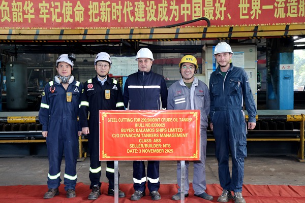 13/11/2025 On November 3, 2025, the steel cutting of 2# 299,500 DWT Crude Oil Tanker bearing builder's hull no.0330002 was carried out successfully by New Times Shipbuilding Co., Ltd. The representatives from shipyard, Dynacom Site Team and ABS classification society attended and witnessed this event.