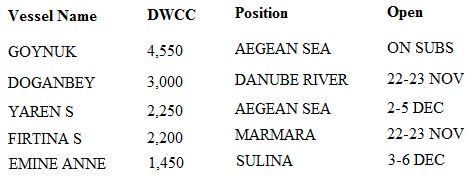 - M/V NURI SONAY-14888MTS DWT-2006BLT-14500MTS DWCC- BOX-OPEN HATCH-ITF FITTED-3 X 30MTS CRANES-GR:575000 CBFT-TT STR 20T/M2 -OPEN CONSTANTZA,BLACK SEA ON 20-21ST NOV