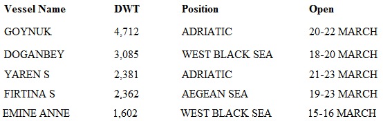 Please find below our latest open tonnage positions for April–May 2026. We are actively seeking suitable cargo opportunities and would appreciate your kind consideration: